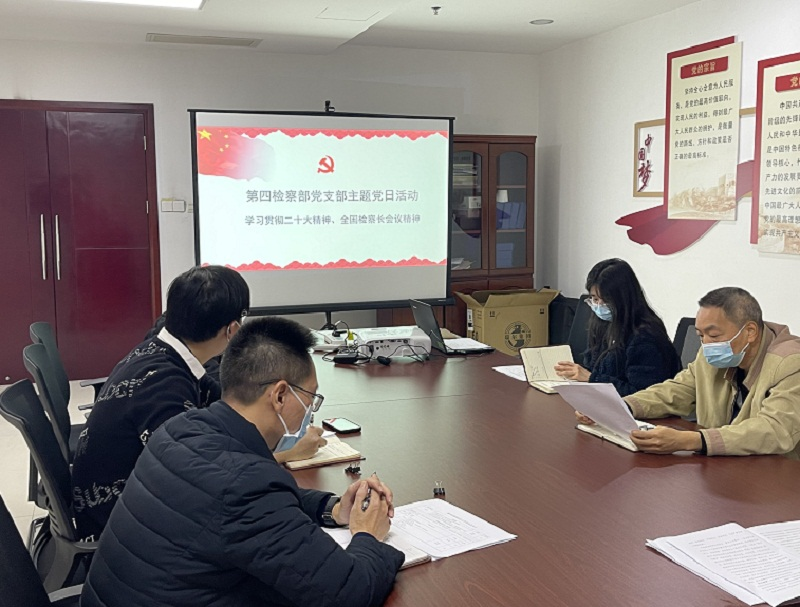 1月11日,第四检察部党支部开展主题党日活动,深入学习贯彻党的二十大精神。支部全体党员参加会议,第四检察部非党员同志列席会议。