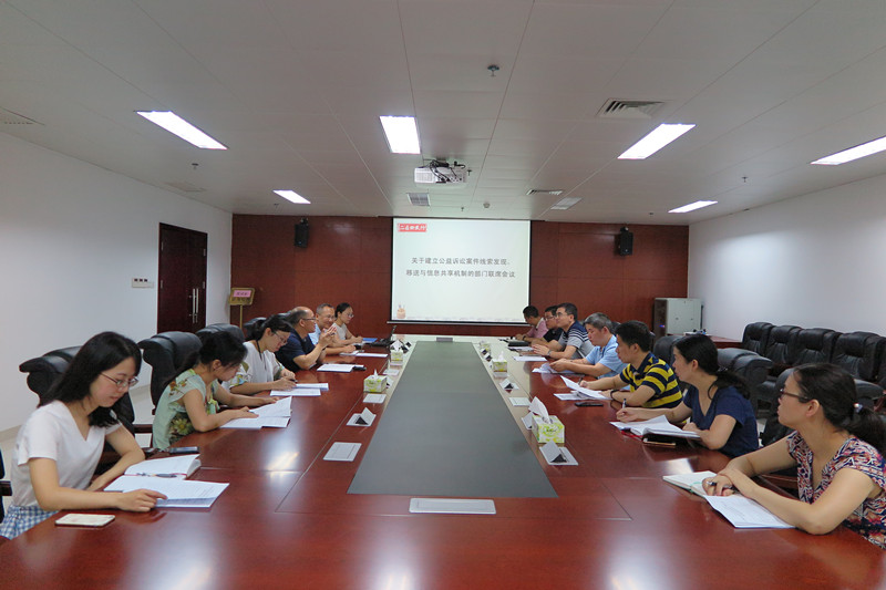 会议分三项议程。首先由黄检讲话,黄检强调了公益诉讼是当前检察机关所面临的一项重大任务,不仅是我院民行部门的新职能,更是全院的一项重要工作,各业务部门应当高度重视,并在发现与移送公益诉讼案件线索、相关信息共享等方面给予民行部门大力支持。黄检还要求各业务部门要将发现公益诉讼线索的重要性向每名承办人传达,不断提高承办人发现公益诉讼案件线索的意识与能力。随后,民行科廖东隽科长在会前充分征求各业务部门意见的基础上,围绕两大诉讼法确定的公益诉讼案件范围,就会前拟定的《关于建立公益诉讼案件线索发现、移送与信息共享机制的意见》逐条解释并征求意见。最后,参会人员就《关于建立公益诉讼案件线索发现、移送与信息共享机制的意见》展开了讨论,达成一致意见并形成了会议纪要。