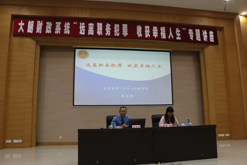 11月23日上午,应东莞市财政局大朗分局的邀请,我院宣讲分团派员前往大朗镇行政办事中心,以“远离职务犯罪,收获幸福人生”为主题,为财政分局的全体人员及大朗镇各社区集体经济组织近百名财务人员讲授了一堂精彩的法制课。
