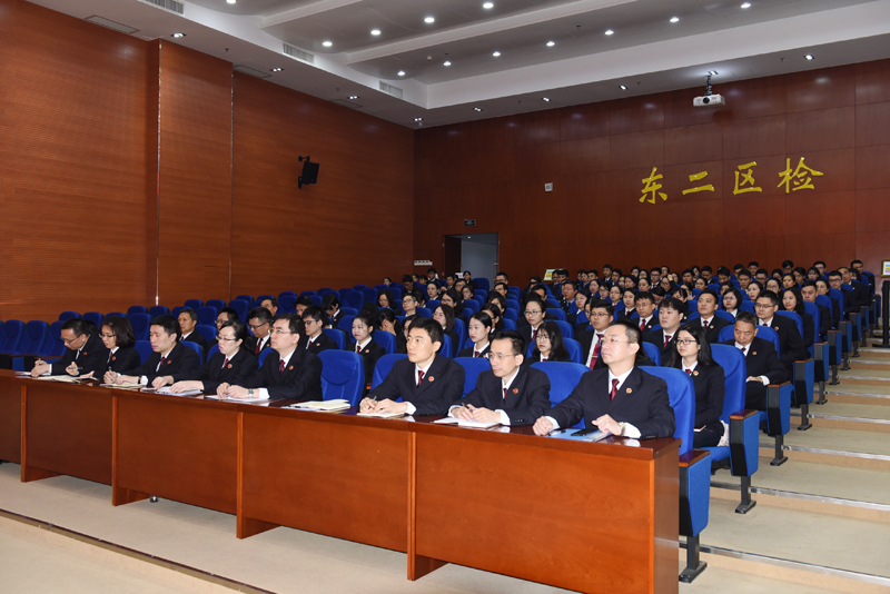 会上,院党组书记、检察长李勇同志总结盘点了我院2018年各项检察工作,并对2019年工作进行总体部署。李检指出,2018年,全体人员按照院党组年初确立的工作总体思路,聚焦法律监督主责主业,深入推进平安东莞、法治东莞建设,扎实开展扫黑除恶专项斗争,确保社会大局稳定,促进社会公平正义,保障人民安居乐业,取得了较好的成绩。回顾2018年的工作,总体上可以概括为“六个全力,六个提高”:一是全力推进平安东莞建设,不断提高群众安全感、幸福感;二是全力贯彻落实新发展理念,不断提高服务经济社会发展水平;三是全力聚焦检察监督职能,不断提高维护公平正义能力;四是全力深化改革创新发展,不断提高检察工作效能;五是全力抓好党建工作,不断提高检察队伍素质;六是全力强化基层基础建设,不断提高综合保障水平。李检进一步指出,在看到成绩的同时,还要清醒地认识到当前工作中存在的问题和不足,比如,对新增的检察职能还需进一步探索;教育培训和岗位练兵要进一步加强等等。