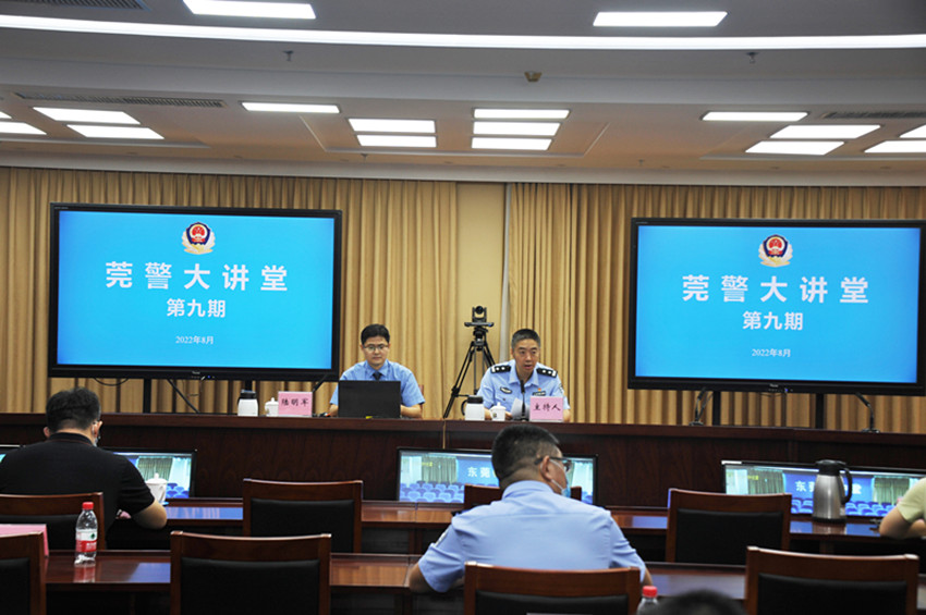 为加强检警沟通,严打网络犯罪,2022年8月26日上午,我院第一检察部副主任陆明军受邀走进东莞市公安局“莞警大讲堂”,以“加强沟通、凝聚共识、严厉打击电信网络诈骗及其黑灰产业链”为主题,为全市公安机关一线干警进行专题授课。东莞市公安局法制支队及相关职能部门全体干警在市局主会场参会,各公安分局以电视电话会议形式组织干警在分会场同步参会。法制支队支队长朱礼加主持了本次活动,东莞市人民检察院派员观摩指导。