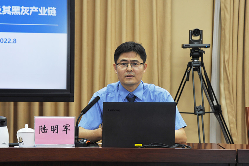 首先,陆明军从不断增长的案件数量、不断变幻的作案手段、不断更新的法律规定三个角度,详细介绍了本次交流的背景,阐明了本次沟通的必要性。接着,陆明军围绕着“两卡”案件罪名认定、非法占有主观目的认定、犯罪金额认定、“人机同一性”证明、现场勘验笔录制作等重点问题进行详细讲解,对执法办案中容易混淆的法律适用问题进行详细阐释,对执法办案中容易忽视的侦查取证问题进行重点提醒。最后,在实务问答环节,陆明军对一线民警提出的管辖、“二级卡”、买卖“四件套”、“帮信”的定罪标准、“掩隐”的上游犯罪等问题进行了详细解答。